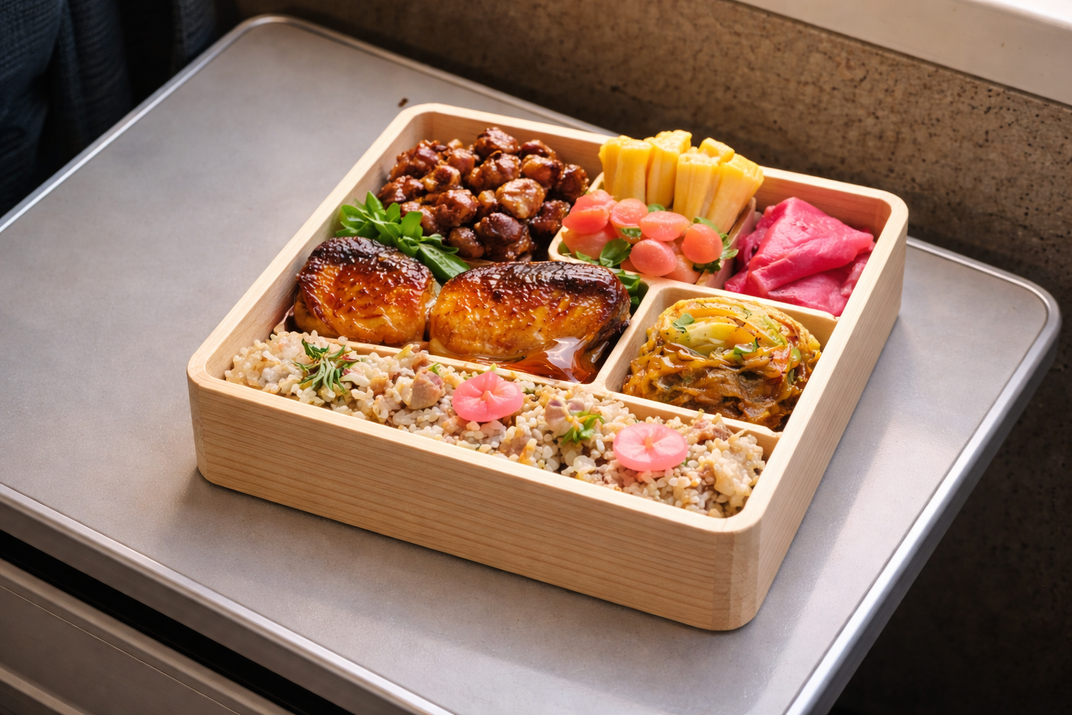Eating an ekiben is inseparable from the rhythm of the train. The gentle motion, the changing scenery outside the window, and the quiet murmur of fellow passengers all shape the experience. Unlike hurried lunches eaten at desks, ekiben are meant to be opened slowly. Compartments reveal carefully arranged dishes, each balanced in color and flavor.