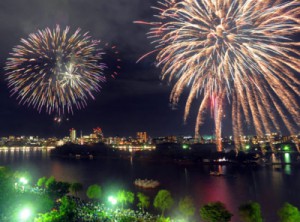 Fireworks displays are also spectacular. You can enjoy watching fireworks dispalys everywhere in Japan. Ohori Fireworks Display is held on August 1 every year and the largest scale in the city. About 6,000 shots of fireworks are shot off from the center of the pond in Ohori Park and thousands of visitors enjoy watching them around the pond.