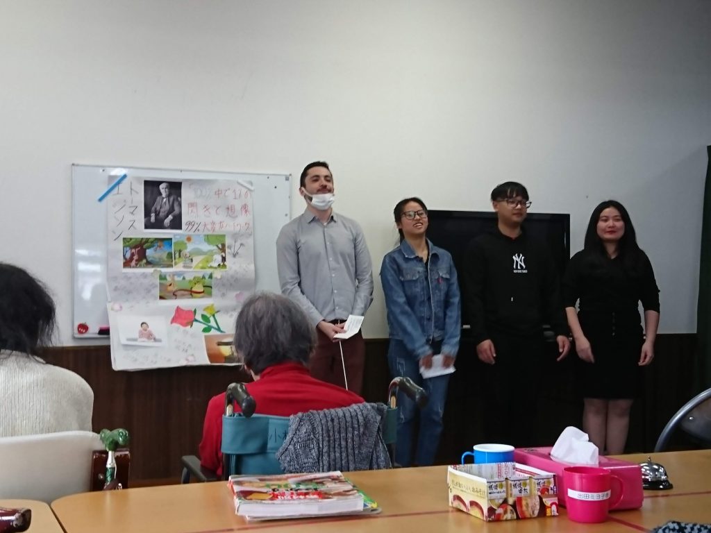 To make a smooth speech in front of senior citizens, they tried to prepare as much as they could. Teachers also helped and trained them the speed of their speaking.