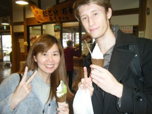 As it was almost time, we went back to the workshop to collect our book marks, and headed to shop for some おみやげ,and not forgetting the soft cream to finish off the activity. Yummy….